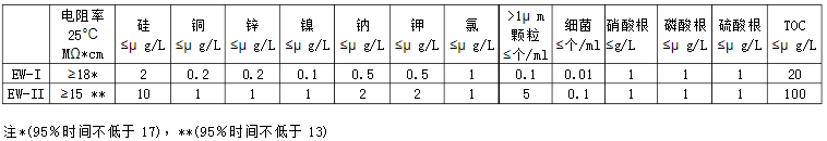 目前,我國電子工業部把工業超純水水質技術分為五個行業標準(GB/T 11446),分別為18MΩ.cm、15MΩ.cm、10MΩ.cm、0.5MΩ.cm,以區分不同水質。制備超純水的辦法一般選用反滲透設備,去離子或電去離子(EDI)等工藝。在水質要求達10MΩ.cm以上,一般選用不同的工藝進行組合調配的辦法來制取,例如選用反滲透加去離子,反滲透加EDI等。